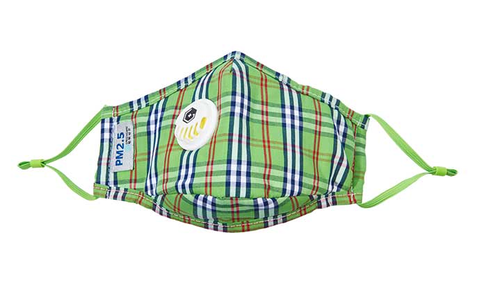 成人純棉立體帶閥口罩-草綠大格子